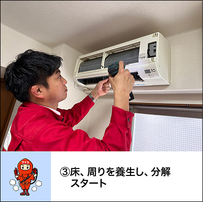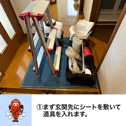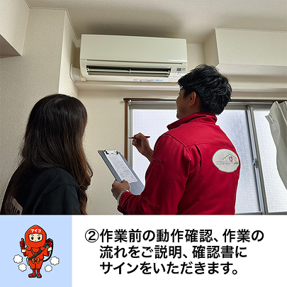 1.エアコンの下を、出来る範囲で結構ですので、 作業が出来るよう空けておいてください。